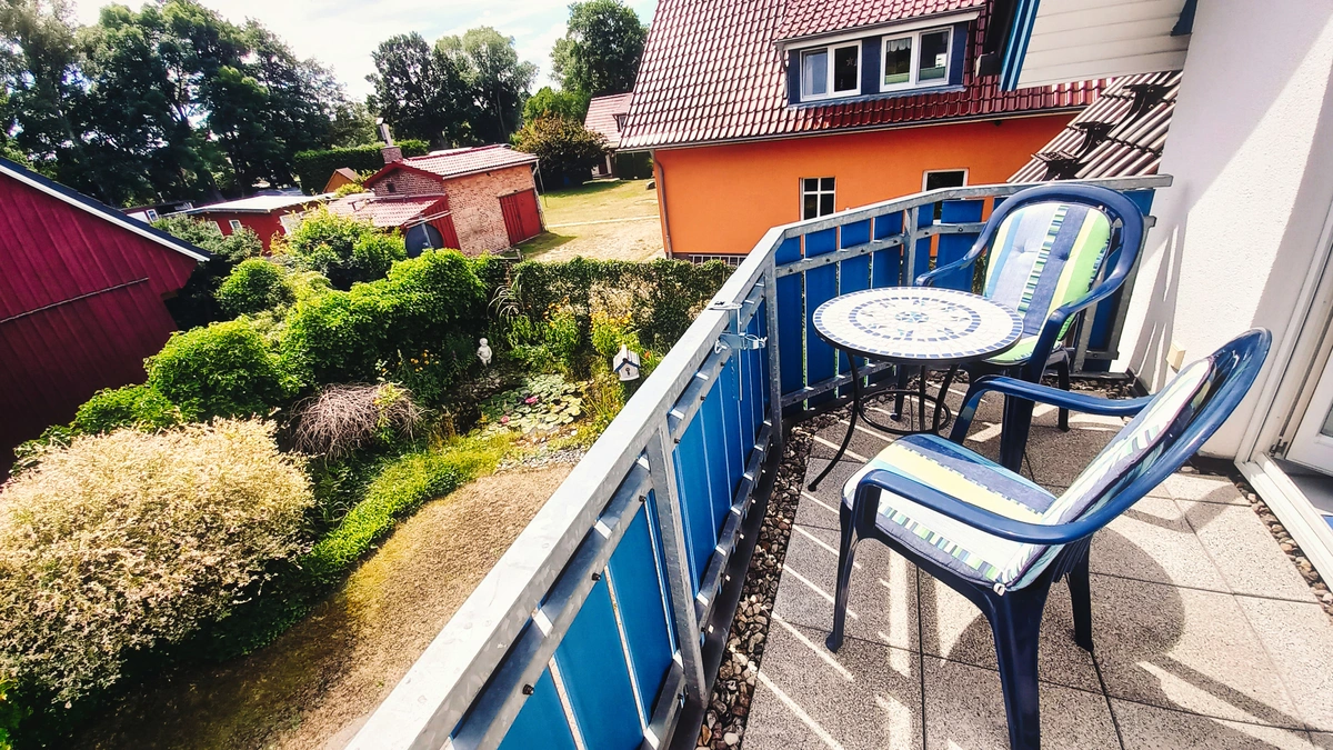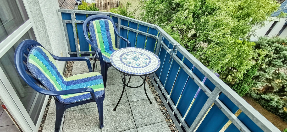 Auf dem südlich gelegenen Balkon stehen Gartenmöbel zur Verfügung.
