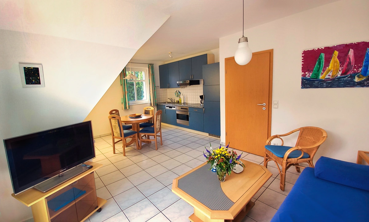 Die 2 Zimmer-Wohnung ist 45m² groß und für 2 - 3 Personen eingerichtet. Die Wohnung befindet sich in Südwestlage.