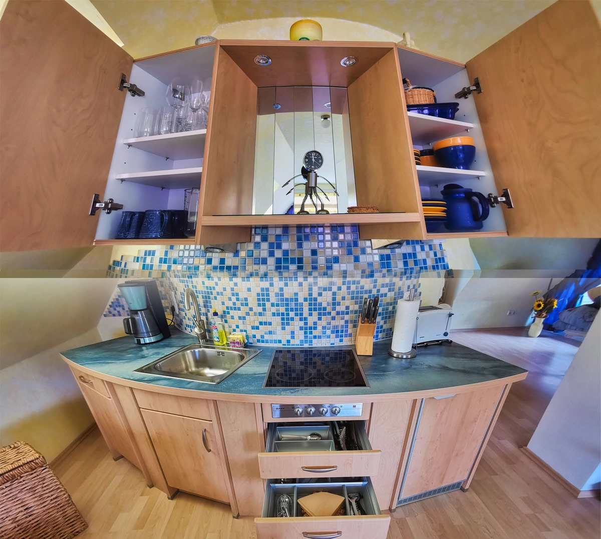 WLAN, Flatscreen-TV (SAT), Radio/CD, Kühlschrank, Kaffeemaschine und Spülmaschine.