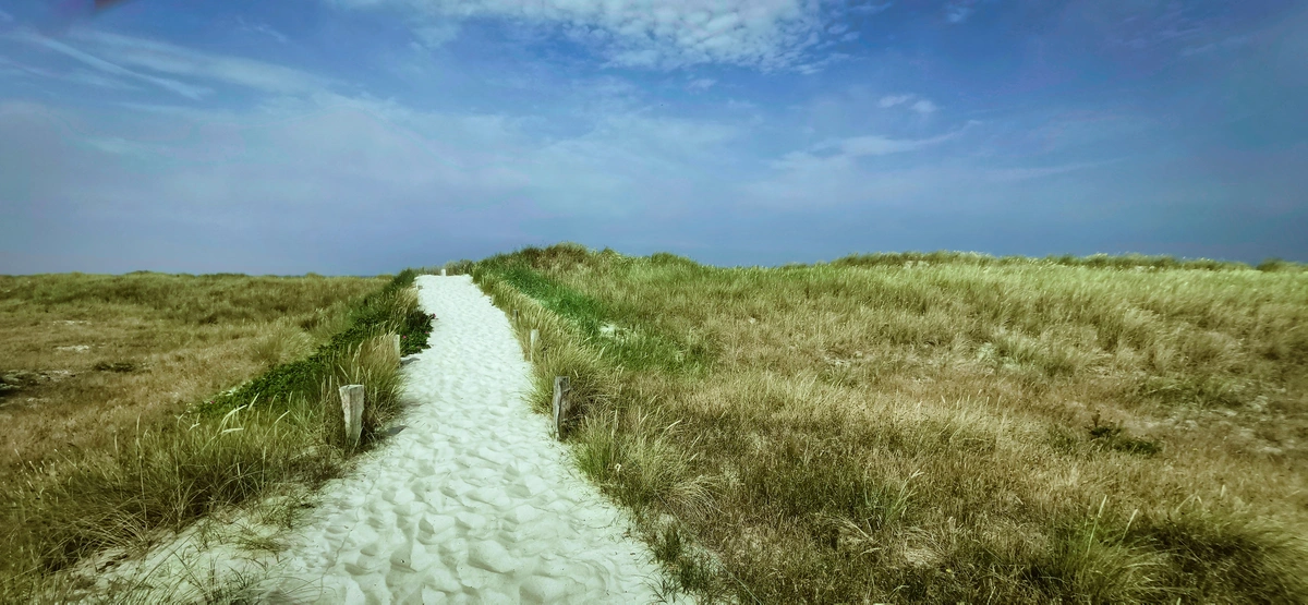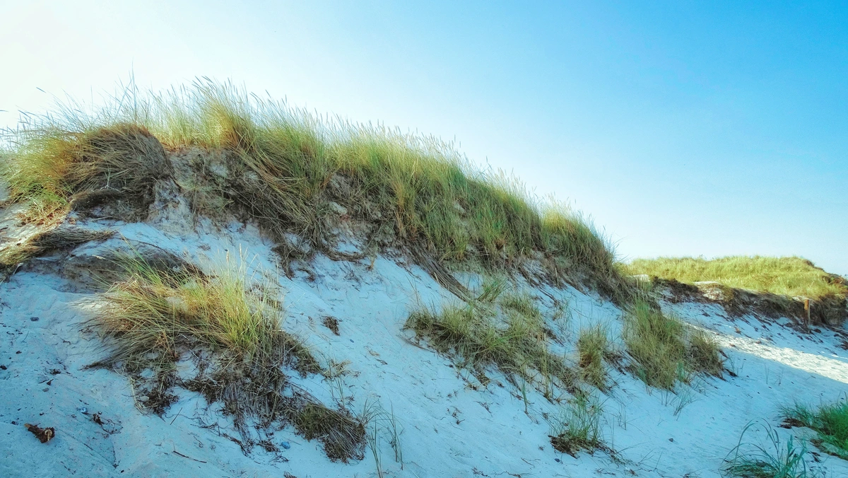 Weißer feiner Sand, sanft abfallend, für Kinder sehr gut geeignet. Klares blaues Wasser, grüne Dünen - schöner kann man das Leben nicht genießen.