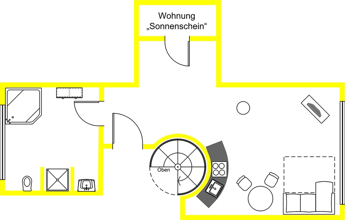 Die 2 Zimmer-Wohnung ist 45m² groß und für 2 Personen eingerichtet. Die Wohnung befindet sich in Südlage.